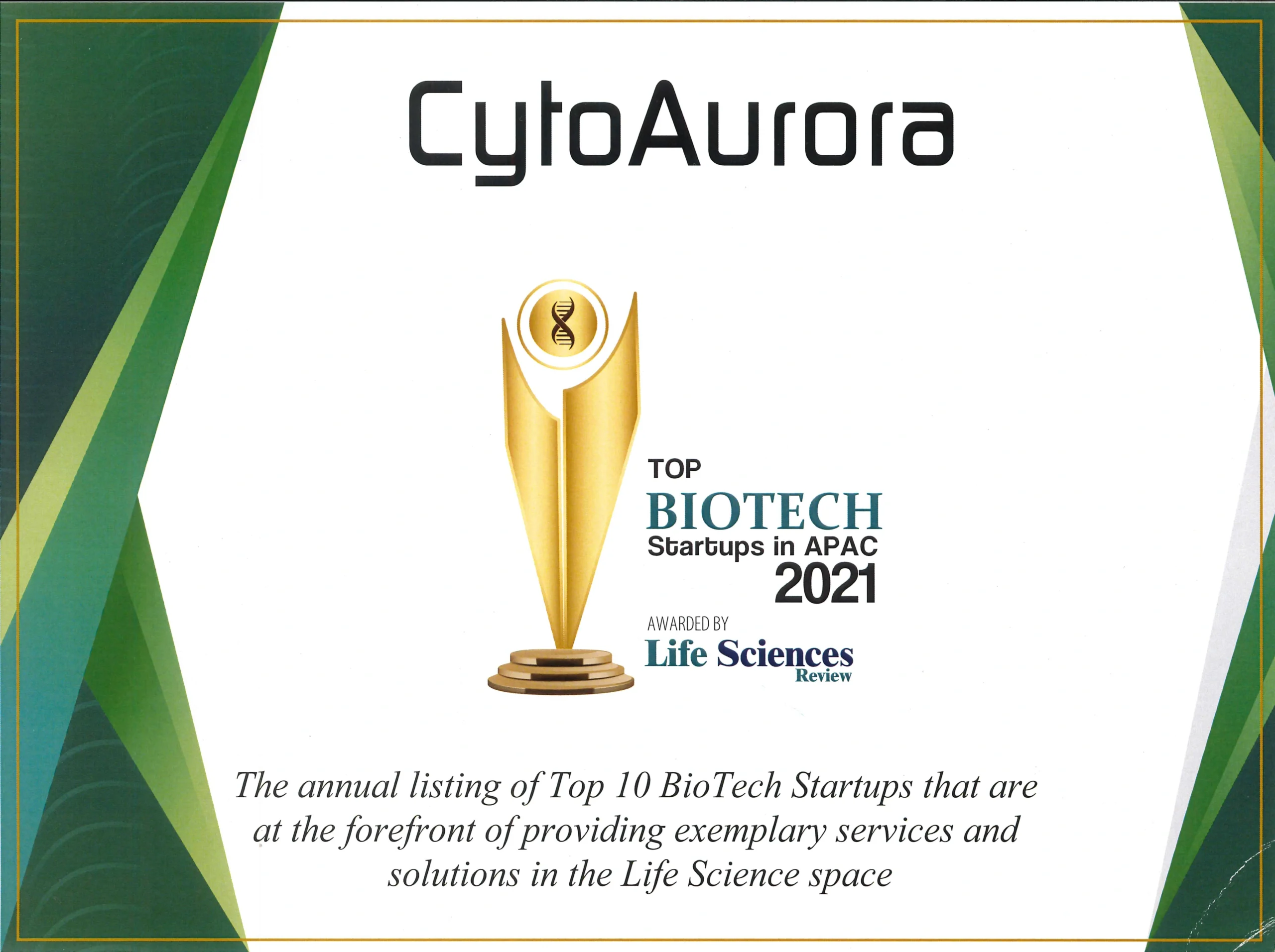“Bronze Award” in the “cross-domain excellence award” category at the Taipei Biotechnology Awards competition. (Taipei, Taiwan)